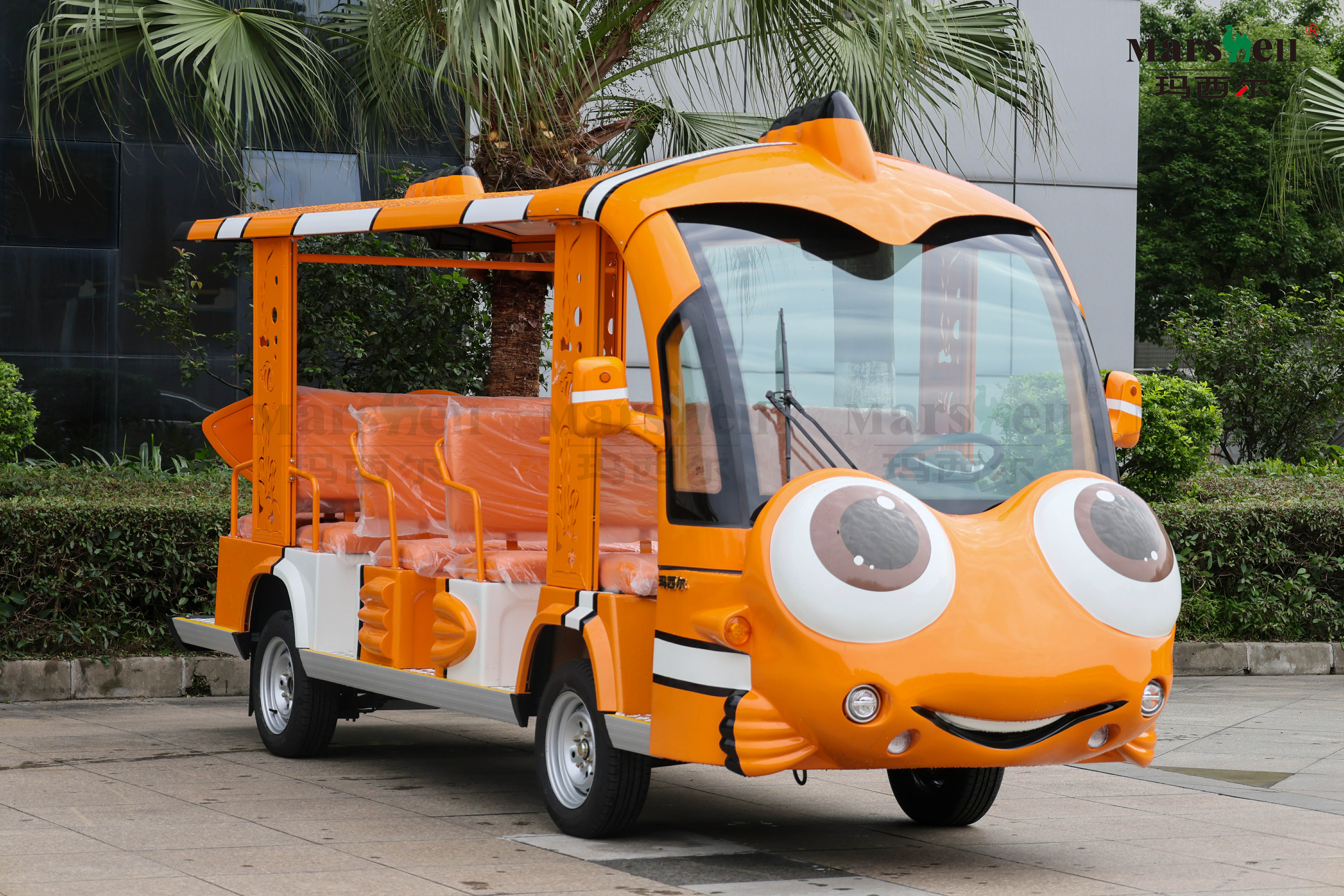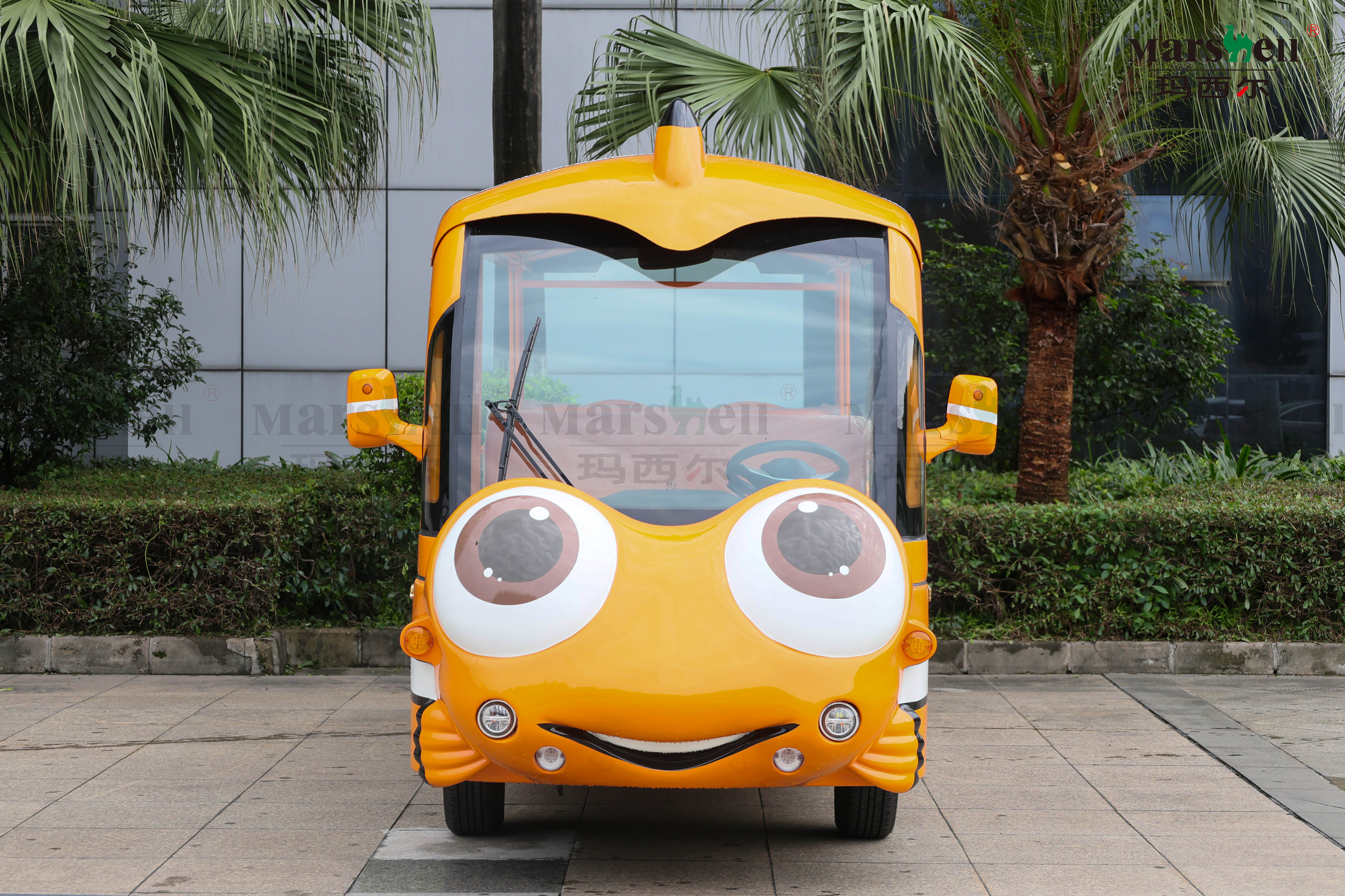玛西尔智对小丑鱼造型主题电动观光车根据一对一的专业设计制造服务,延伸出各种造型电动观光车,根据不同使用场景单独开发新车型,造型时尚漂亮,更好的适应客户需求。