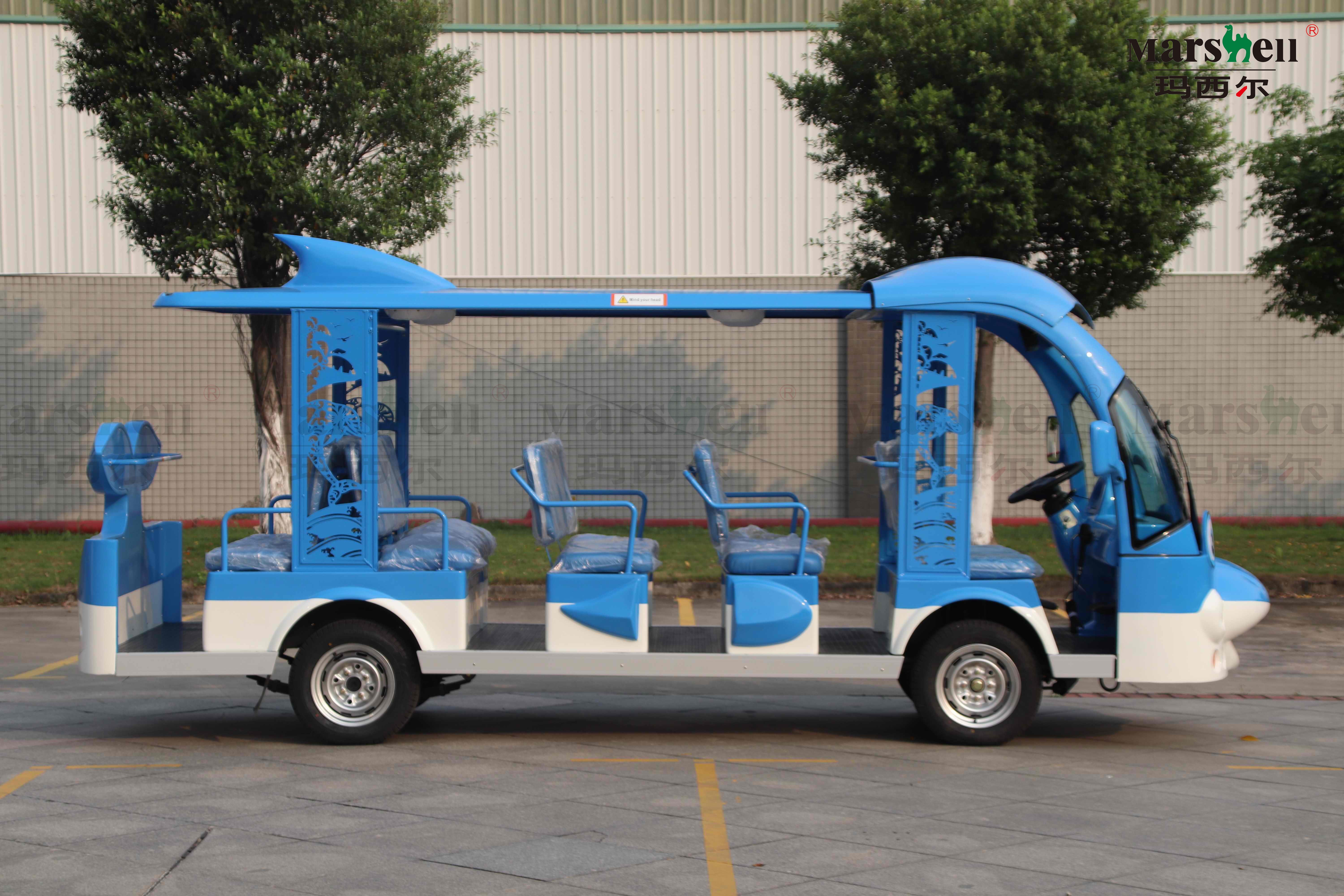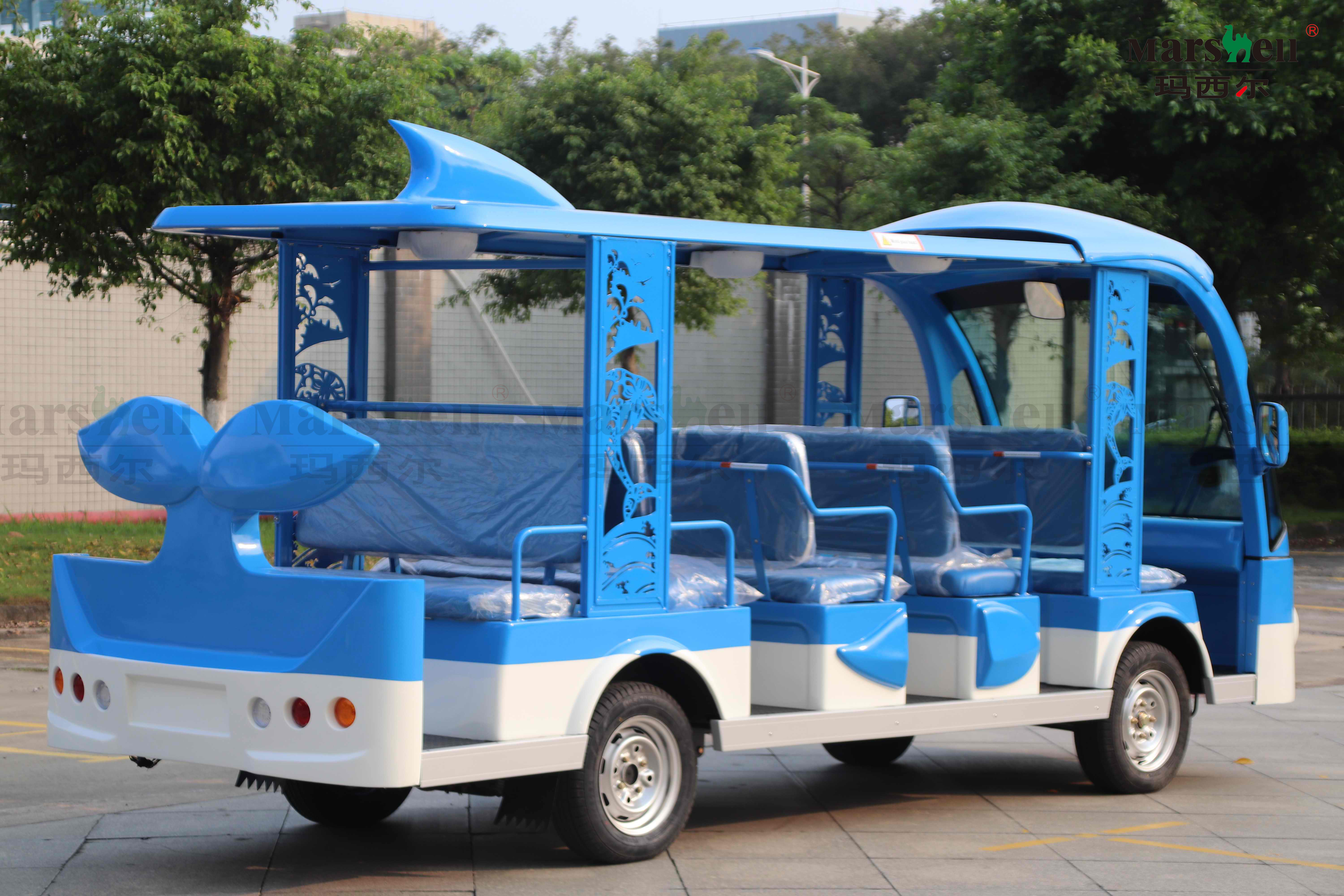 玛西尔智对海豚造型主题电动观光车根据一对一的专业设计制造服务,延伸出各种造型电动观光车,根据不同使用场景单独开发新车型,造型时尚漂亮,更好的适应客户需求